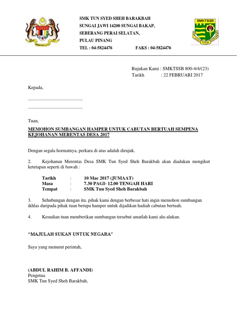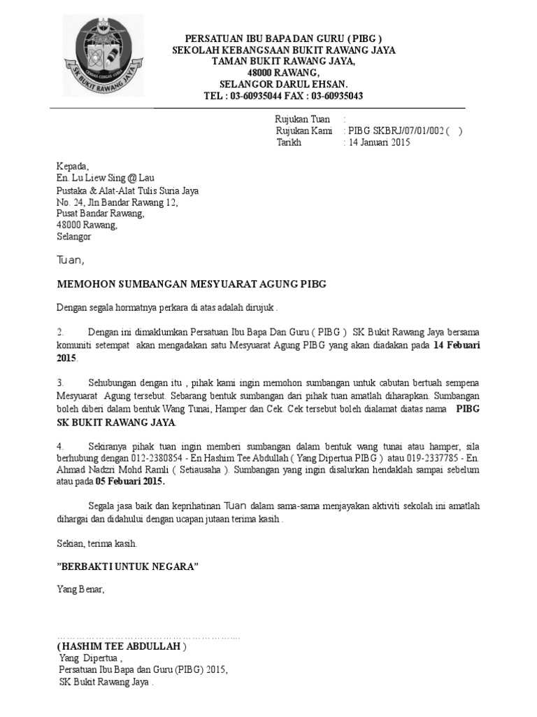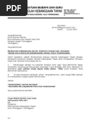 Contoh Surat Rasmi Memohon Sumbangan Hamper Zhengfaye