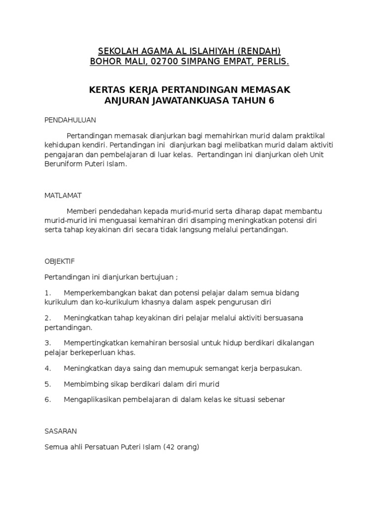 Kertas Kerja Pertandingan Memasak 2015 Pdf